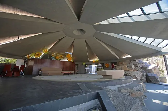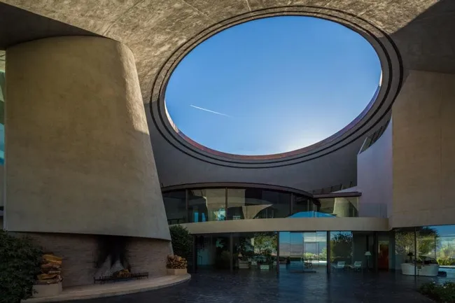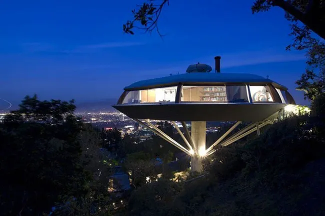Bob Hope’s Palm Springs home, aka the “UFO House”, was created in 1973 to be reminiscent of volcano with a circular opening in the courtyard roof. If anything, it looks like something out of Close Encounters of the Third Kind with the mothership touching down on Planet Earth.