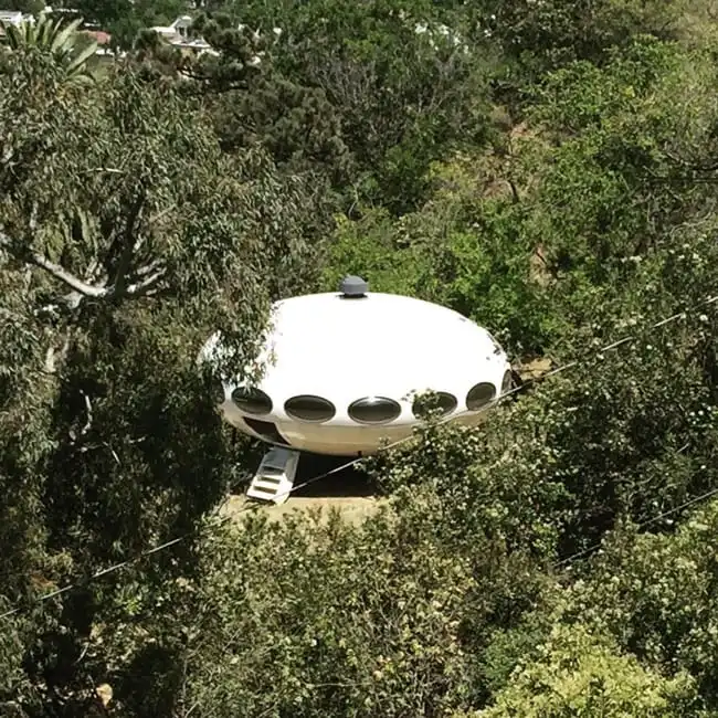 This masterpiece was conceived as a pre-fabricated portable ski chalet. The house is mostly made of plastic with stairs that fold out from the entry hatch. You know, like the Millennium Falcon. Less than 100 were made in the late 1960s and early 1970s with only 50-60 still remaining. This one sits literally next door to the Chemosphere. Han Solo would be proud to retire here.