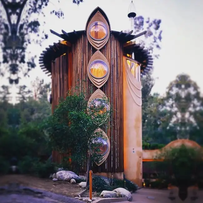 Situated in the San Fernando Valley’s bedroom community of Woodland Hills, this hippie New Age home is built out of repurposed wood. The house is said to have an energy that gives an aura off that makes you feel like you are in a world without atmospheric friction.