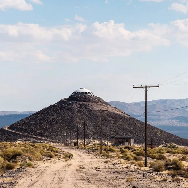 In 1968, the guy who patented the skateboard decided to built a UFO house on the top of dead volcano in the heart of the Mojave Desert. It even has a moat and rooftop observation deck.