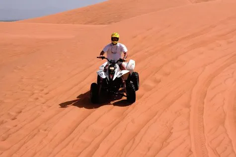 Dubai is more than just futuristic skyscrapers and high-end boutiques. Just miles from the commercial center sits a desert playground of towering sand dunes. A forbidding wilderness waiting to be conquered. Choose your 4×4 Jeep or your 4-wheel ATV (pictured below right), and hair raising thrill