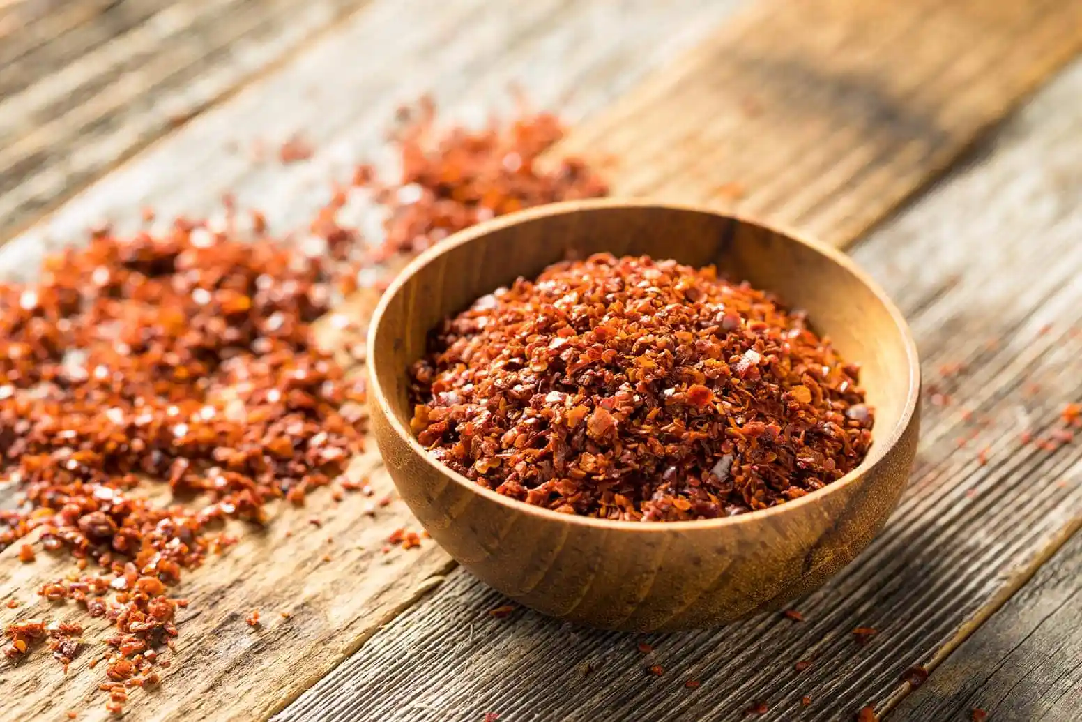 Red Pepper Flakes—Grown in the Southeastern Anatolia region, this spice is added when you want to add heat to recipes. Most restaurants serve it in tableside next to the salt and pepper. It can be added while cooking meat sauces, soups, legumes (beans and chickpeas), and stews.
