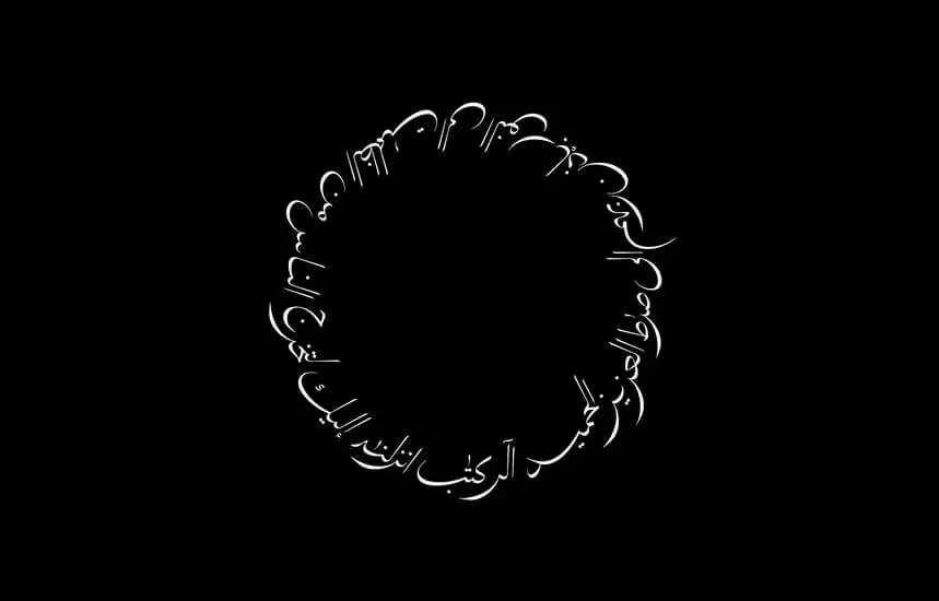 British artist and designer Rūḥ Al-Alam has a body of work that spans two decades, covering multiple disciplines. His video art is especially striking. “Darkness to Light” is an animated work that employs the first verse of Surah Ibrahim in the Qur’an. Against a black background, the verse slowly reveals itself as Al-Alam rotates the frame, drawing the viewer in with intrigue. Projected on the exhibition walls at the Weltmuseum in Vienna (the largest anthropological museum in Austria), the work was paired with a recitation of the verses.